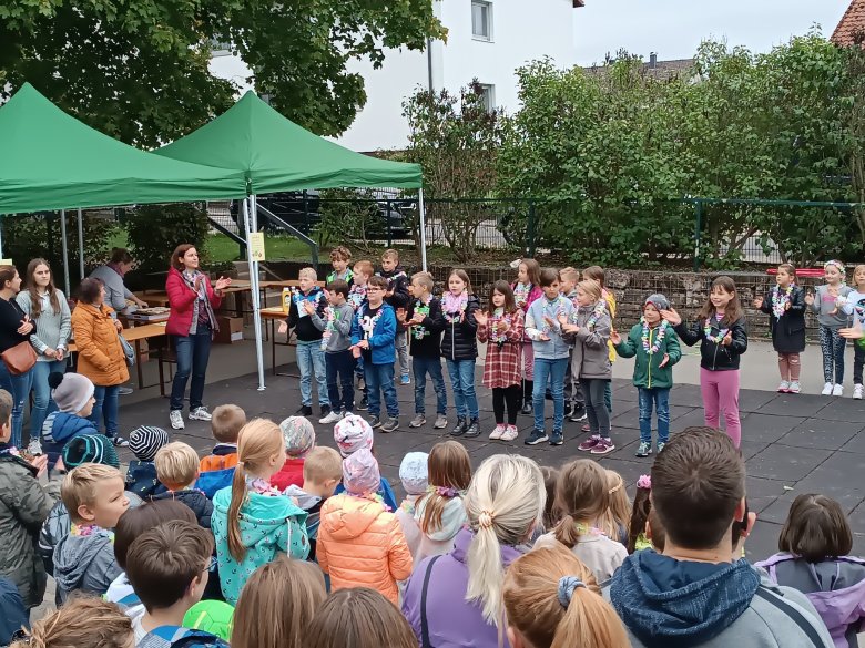 Unter dem Motto „Miteinander spielen und bewegen“ fand am 24.09.2022 ein tolles Schulfest an der Grundschule Bottenbach statt. Zur Begrüßung führte jede Klasse etwas auf: es wurde getanzt, gesungen, Seilgesprungen, Hulla-Hupp gezeigt und musiziert auf Gartengeräten,… Neben vielen schönen Spielen, wie zum Beispiel Sackhüpfen, Hockeyslalom, Dosenwerfen oder Sommerskilaufen, waren der Kletterturm und die Höhlengänge eine spannende Attraktion. Bei einem kleinen Herbstmarkt konnte man regionale und selbstgemachte Produkte kaufen. Zur Stärkung gab es leckere Speisen und Getränke. Viele nette Begegnungen fanden statt und die Kinder waren mit Begeisterung bei der Sache.