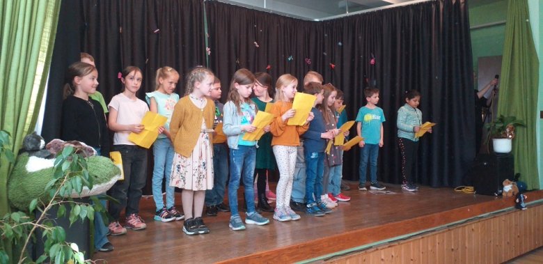 Am Freitag, den 28.3., fand an der Grundschule Bottenbach ein fröhliches und lebendiges Schulfest zum Abschluss der Projektwoche statt. Die Kinder hatten mit ihren Lehrkräften ein buntes Programm mit Liedern, Theaterstückchen und einem Tanz einstudiert. Unter dem Motto „Naturdetektive“ erforschten die Kinder eine Woche lang die Themen Löwenzahn, Vögel, Frösche, Insekten und Eichhörnchen. Die Ergebnisse wurden in den Klassensälen präsentiert und im Schulgelände findet man jetzt einen neu gepflanzten Walnussbaum, einen Froschteich und eine Vogeltränke. Bei strahlendem Sonnenschein konnte man auf dem Schulgelände einen Barfußpfad begehen, wie ein Frosch springen, eine Naturrallye mitmachen und ein Naturquiz lösen. Im Naturmarkt erhielt man Pflanzen, Samentütchen und selbst gefertigten Vogelnistkästen. Die ganze Schulgemeinschaft mit Eltern, Förderverein, Betreuungsteam, Kollegium und Unterstützung der Dorfgemeinschaft haben ein gelungenes Fest ermöglicht. Allen danke für diesen schönen Nachmittag.